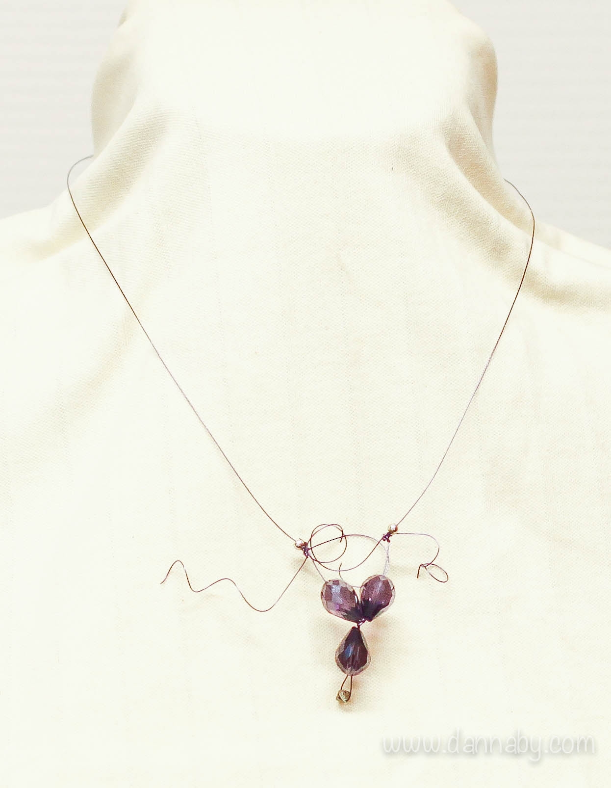 A nice short to medium necklace made of Swarovski crystal elements and tiny metal beads, on colored nylon coated stainless steel thread. Something simple!