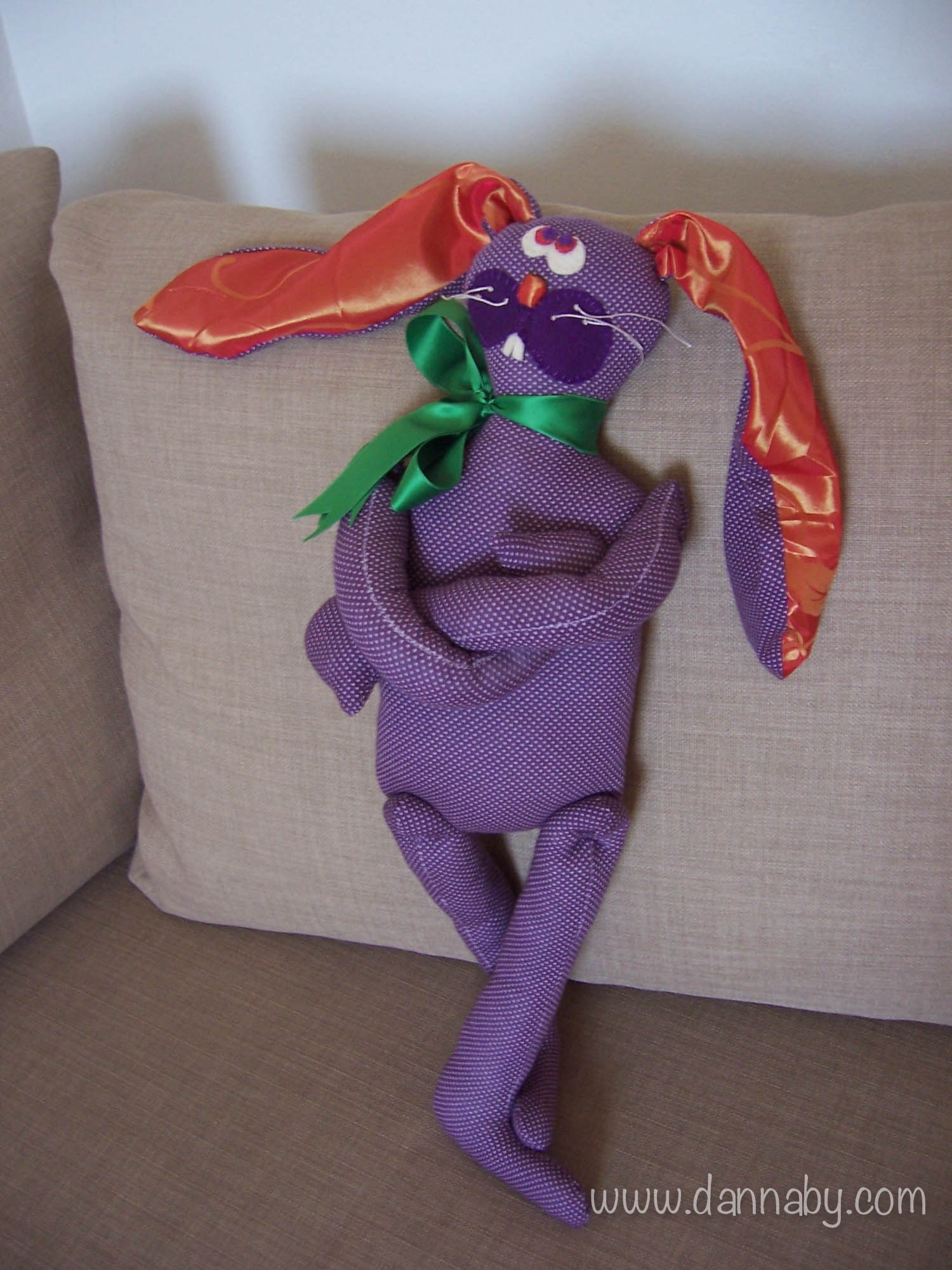 He is made of natural cotton fabric with some synthetic felt and satin elements. He is stuffed with nonallergic material. He is also perfect for a baby's room decoration, isn't he?