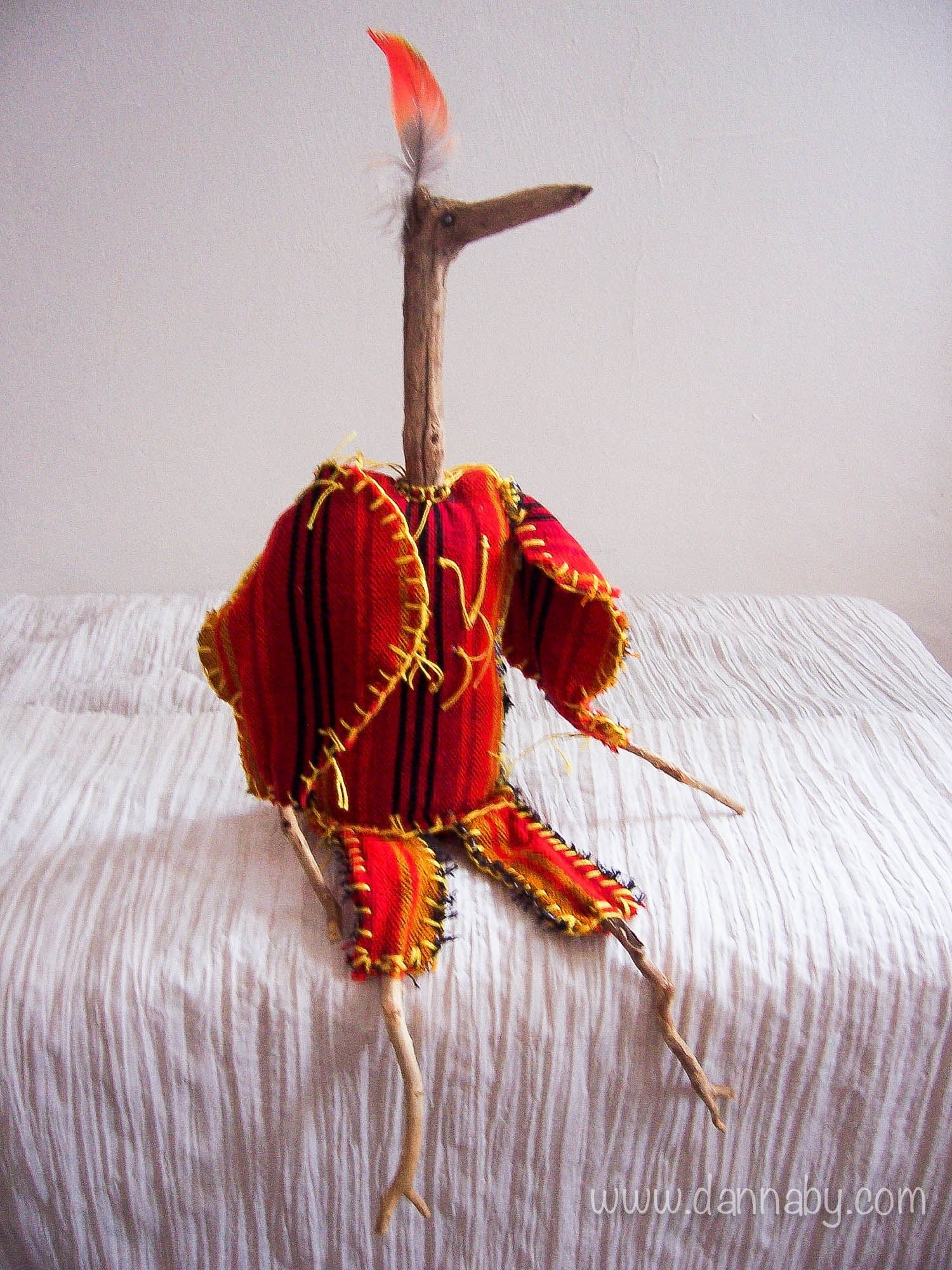 This unique decorative object is made of tropic wood and Guatemalan hand-wowen textile.