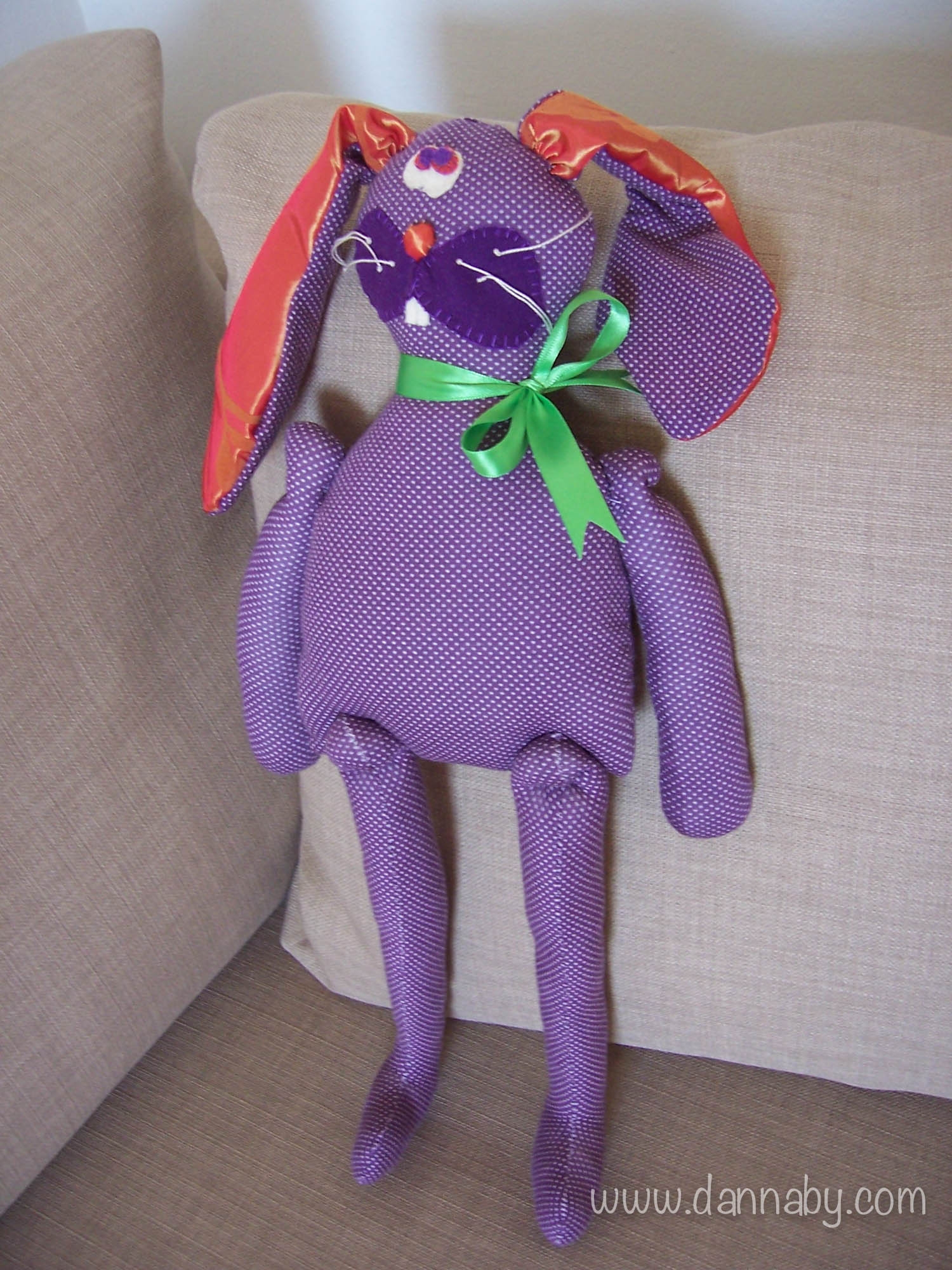 He is made of natural cotton fabric with some synthetic felt and satin elements. He is stuffed with non-allergenic material, so it fits perfectly for a baby's room decoration.