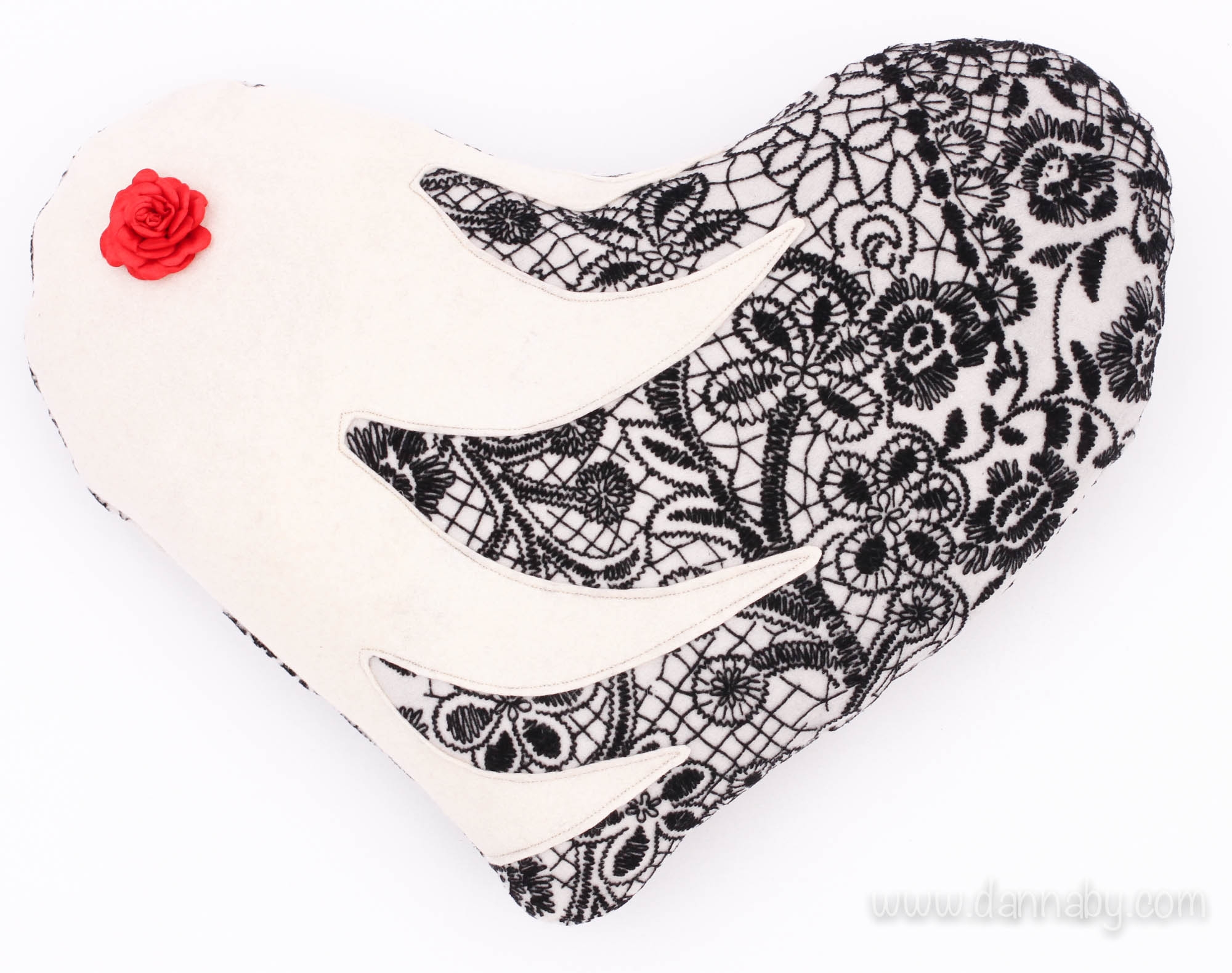 This soul-warming crisscross heart is definitely a must-have fot your parlor. The two-type warm fabric highlights the piece and the little red satin rose is of eyecatching enchant.